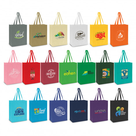 Standard-size reusable tote bag with a gusset and longer carry handles so it can be carried on the shoulder. It is manufactured from 80gsm non-woven polypropylene material.