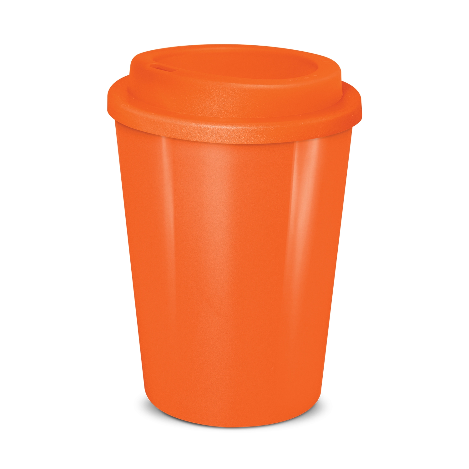 350ml double wall reusable coffee cup with a secure screw on lid which will keep drinks hot for longer and remain comfortable to hold. It is manufactured from polypropylene which is shatterproof, odour-resistant and BPA-free. The cup and lid can be mixed and matched in any colour combination from the colour palette at no extra cost. Up to five different colour combinations are included in the price and more are available for an additional charge. An optional black gift box is available on request. This product is not dishwasher safe and handwashing is recommended.