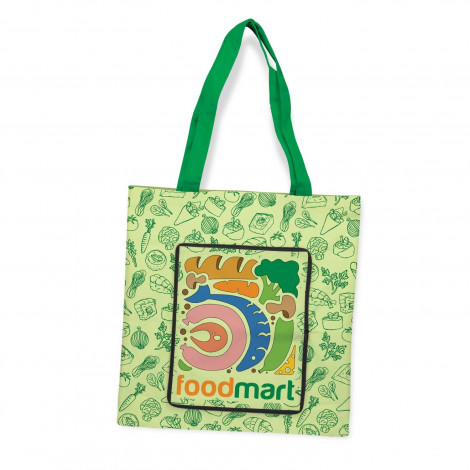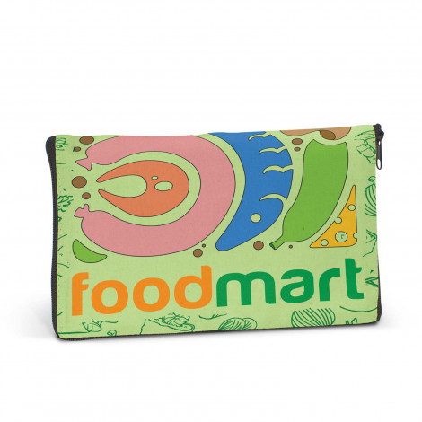 140gsm cotton tote bag which can be folded down into a zippered pouch for easy storage. When unfolded, the zipper also functions as a front storage pocket. The handles and stitching are available in 16 colours which will match unless requested otherwise. Cali can be completely customised with full colour branding on both sides as well as the zipper pocket. A lead time of 15-20 working days applies to this product.