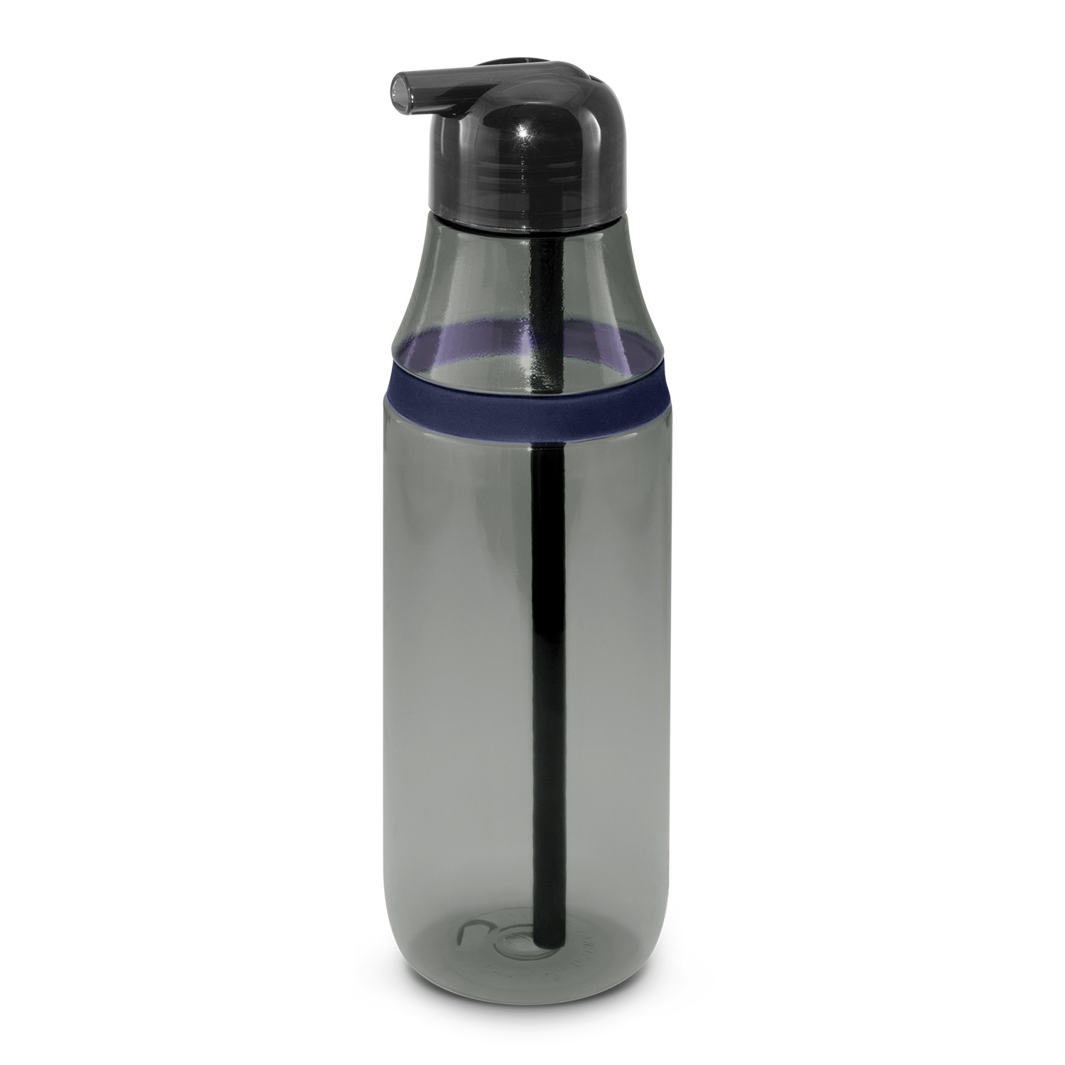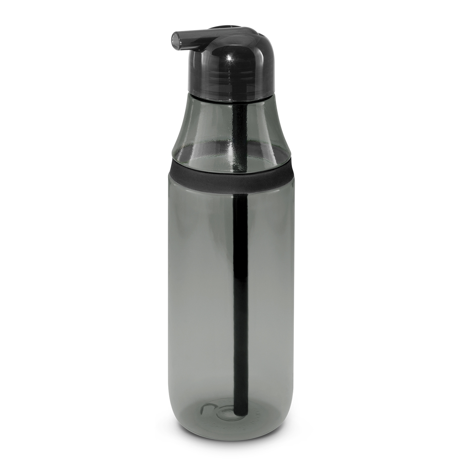 Stylish 750ml translucent drink bottle that is manufactured from Tritan which is odour-resistant and BPA-free. It has a secure screw on lid with a flip out drinking valve and a straw. Camaro has a decorative silicone band and an optional black gift box is available. This product is not dishwasher safe and handwashing is recommended.