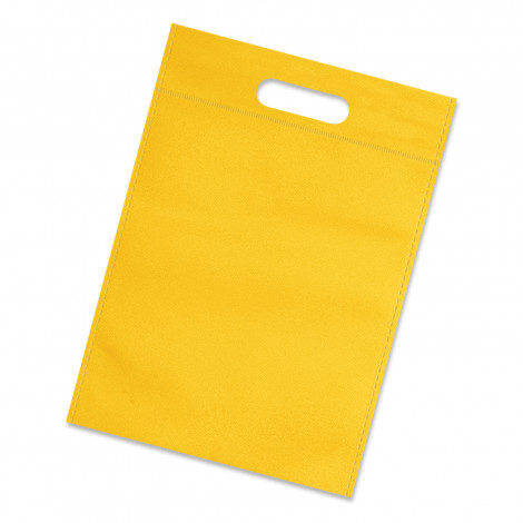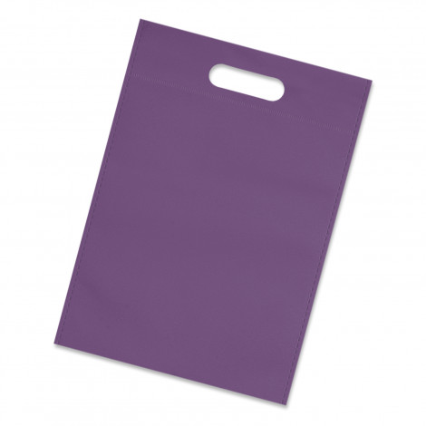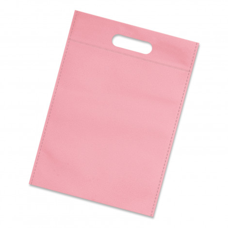 Small heat-sealed tote bag with die cut hand grips which is designed to hold A4 documents and catalogues etc. It is manufactured from 80gsm non-woven polypropylene material.