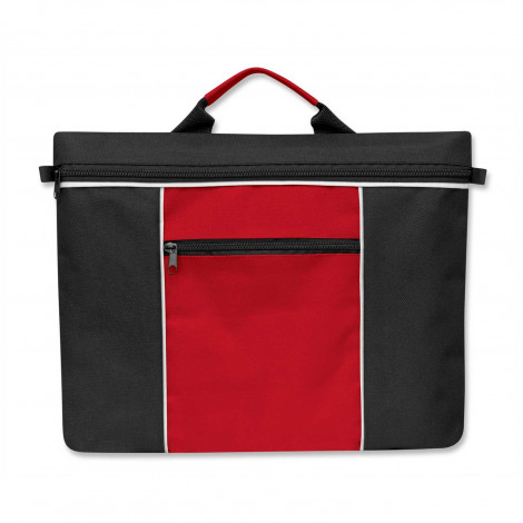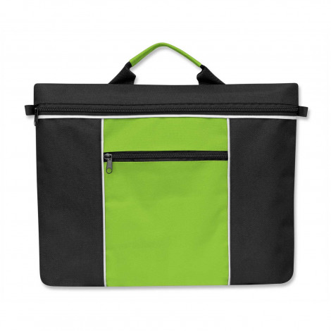 Robust satchel with smart white piping which is manufactured from tough 600D polyester. It has a woven carry handle, a zippered top closure and a large zippered front pocket.