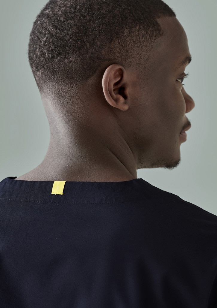 Unisex reversible scrubs specifically designed for commercial laundromats.