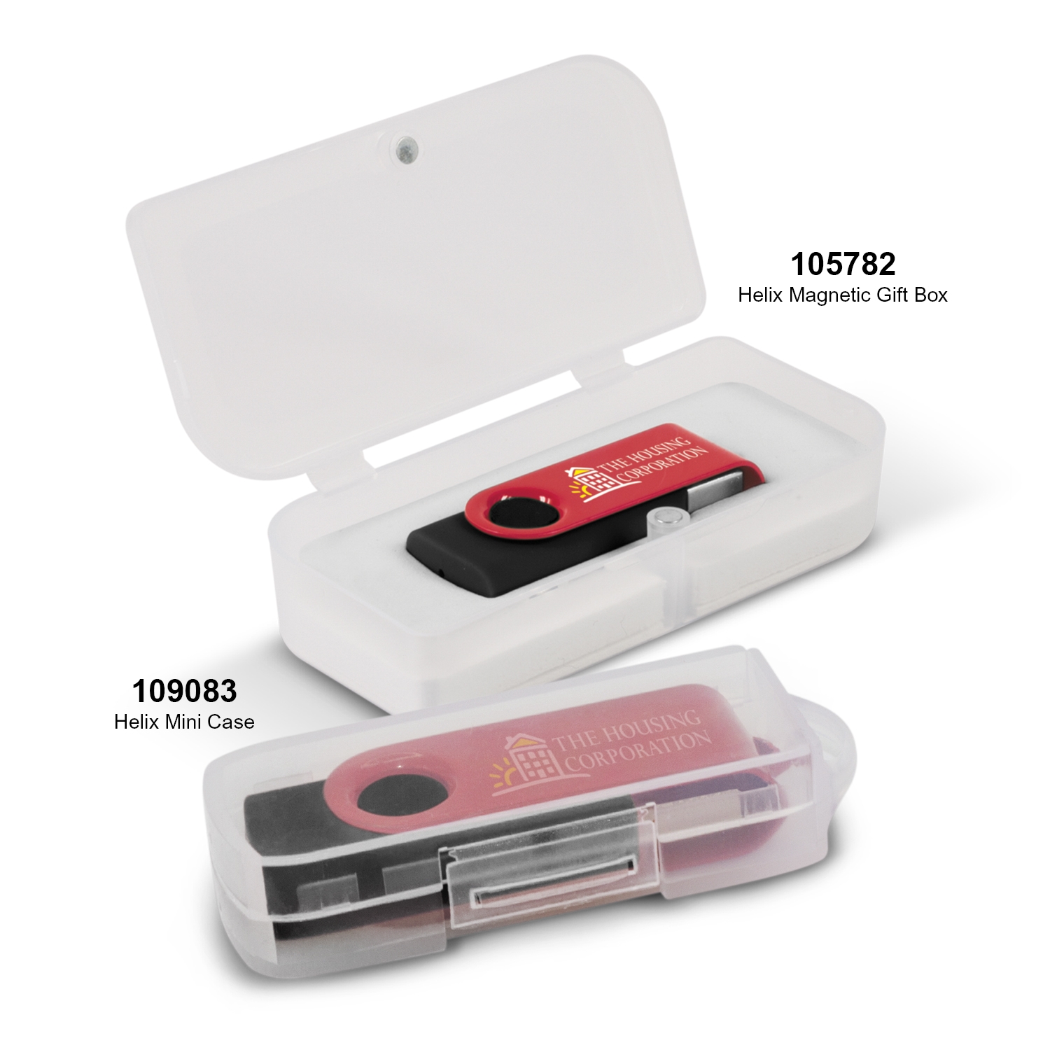 Classic flash drive with a metal swivel and a soft touch rubber lacquered case. It has 8GB of memory with a USB 2.0 interface and data uploading is available on request. Helix can be presented in an optional magnetic closure gift box or the optional Helix Mini Case.