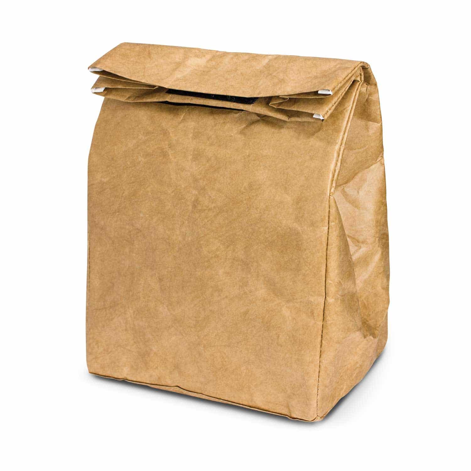 Attention-grabbing 9L lunch cooler bag which is manufactured from trendy Tyvek. The Tyvek look has become very popular and the material itself is lightweight and extremely durable. It is resistant to abrasion, tearing and chemicals as well as being colourfast and waterproof. Kraft has aluminium foil laminated foam insulation, a dual Velcro folding top closure and an external slip pocket.