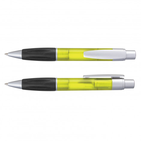 Retractable plastic ball pen with a soft rubber grip, a frosted translucent barrel and metallic silver trim. It has a blue large volume refill with 1800 metres of German manufactured Dokumental ink and a tungsten carbide ball for improved writing quality.