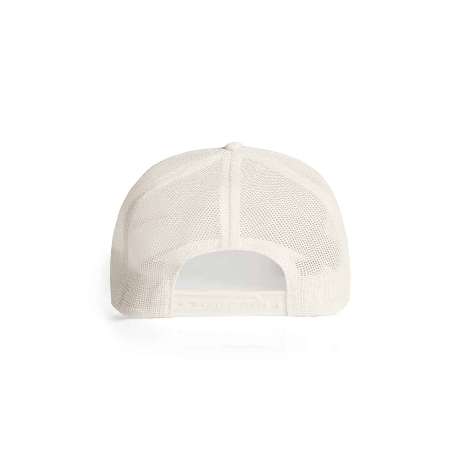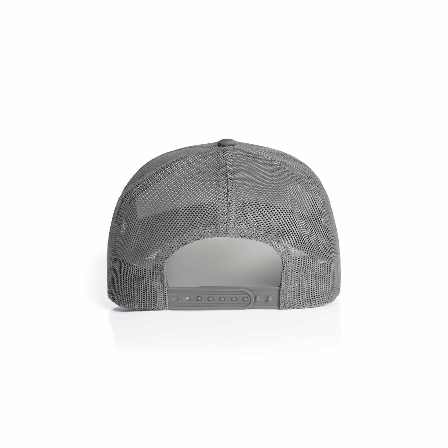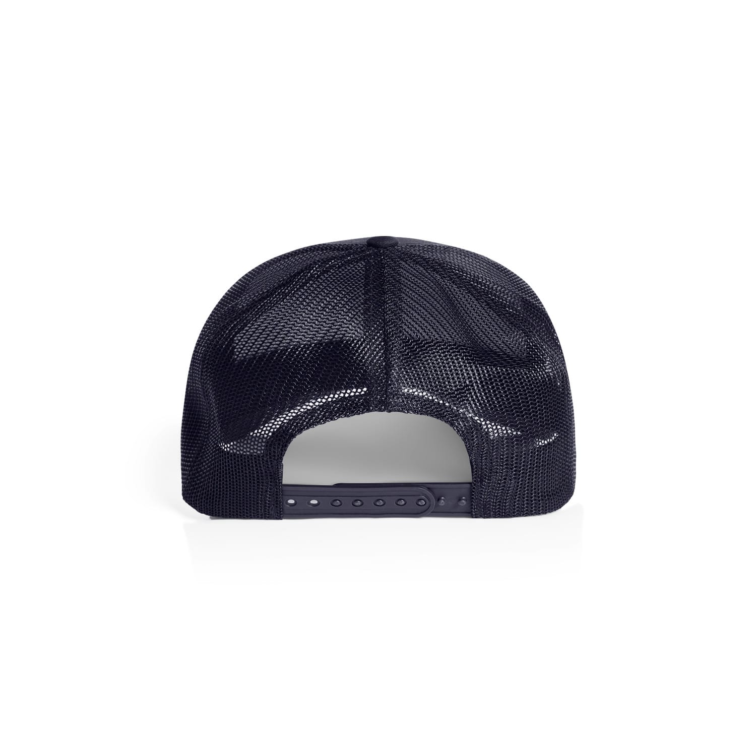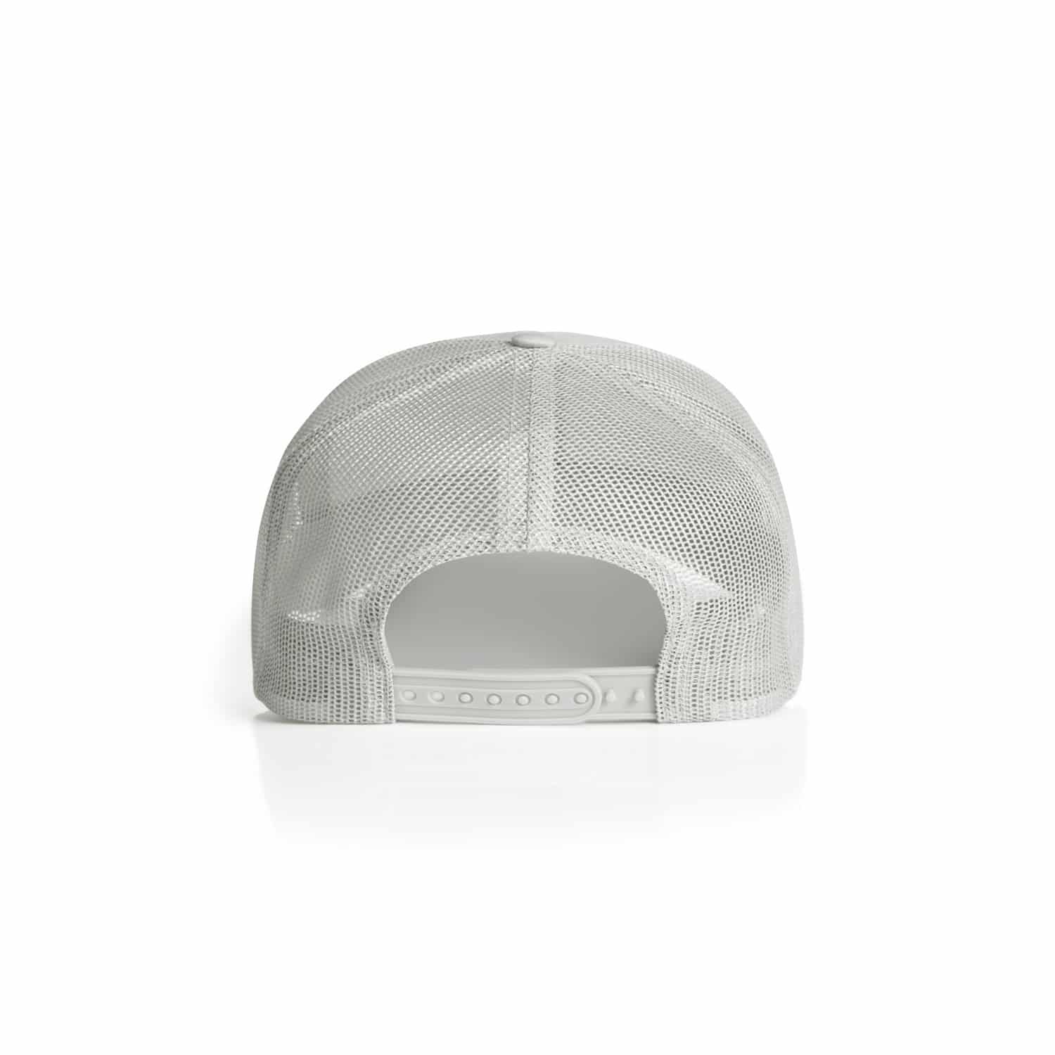 High profile – snapback cap, shallow curved peak, tonal mesh back, plastic snapback, tonal under-peak lining