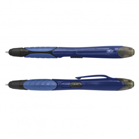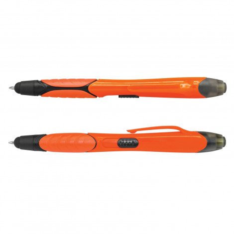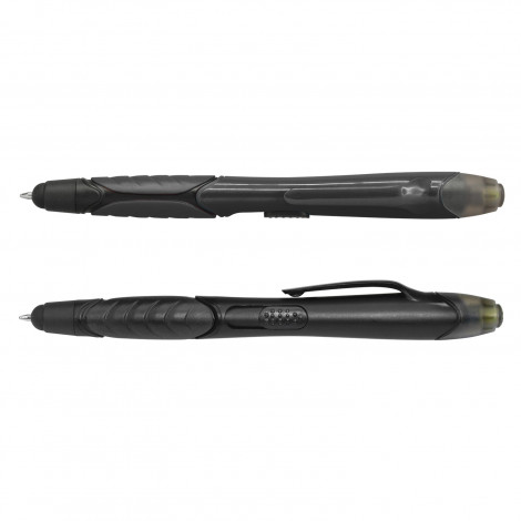 Retractable plastic ball pen with a soft rubber grip, a stylus for use with touch screens and a yellow highlighter. It has a black refill with 400 metres of ink and a tungsten carbide ball for improved writing quality.
