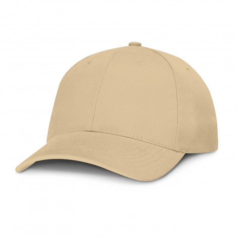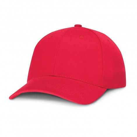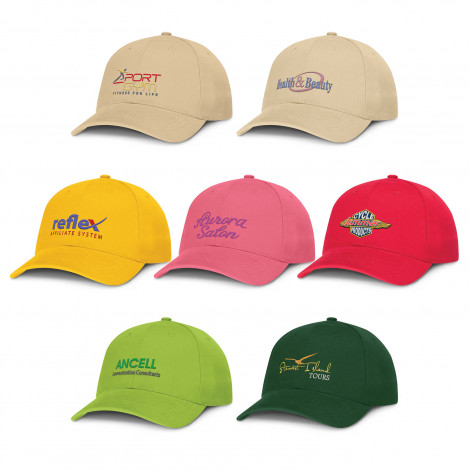 Structured six panel, heavy brushed cotton cap with embroidered eyelets, a pre-curved peak, a sweat band and an adjustable closure complete with a metal buckle which allows one size to fit most people.