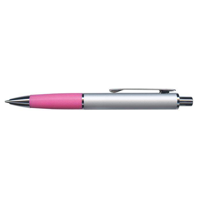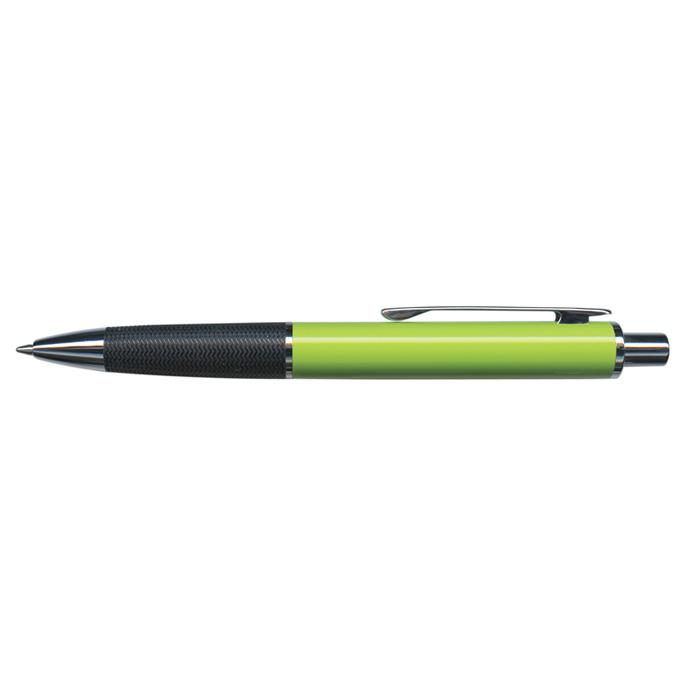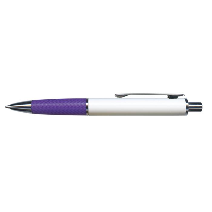 Retractable aluminium ball pen with a lacquered barrel, a soft rubber grip and shiny Chrome accents which can be mixed and matched in 132 colour combinations. It has a Blue or Black ink TRENDS Large Volume refill with 1800 metres of German manufactured ink and a tungsten carbide ball for improved writing quality. Symphony laser engraves to an oxidised White colour.