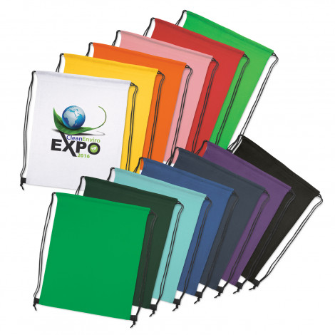 Affordable drawstring backpack with robust braided loops at the base for added strength. It is manufactured from 80gsm non-woven polypropylene material.
