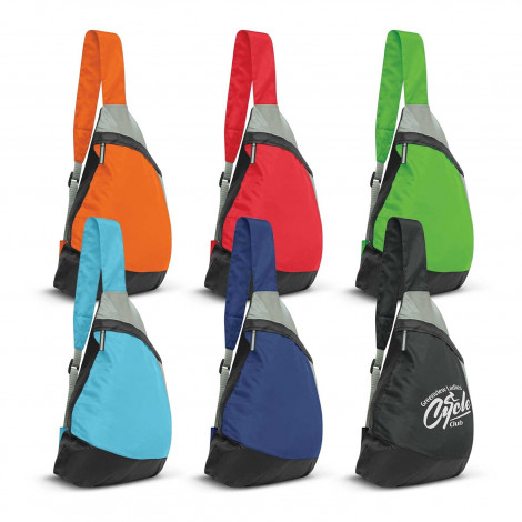 Affordable slinger bag which is manufactured from 210D polyester. The single, adjustable shoulder strap allows the bag to be rotated to the front of the body and accessed without taking it off. It has a zippered main compartment and a water bottle carrier.