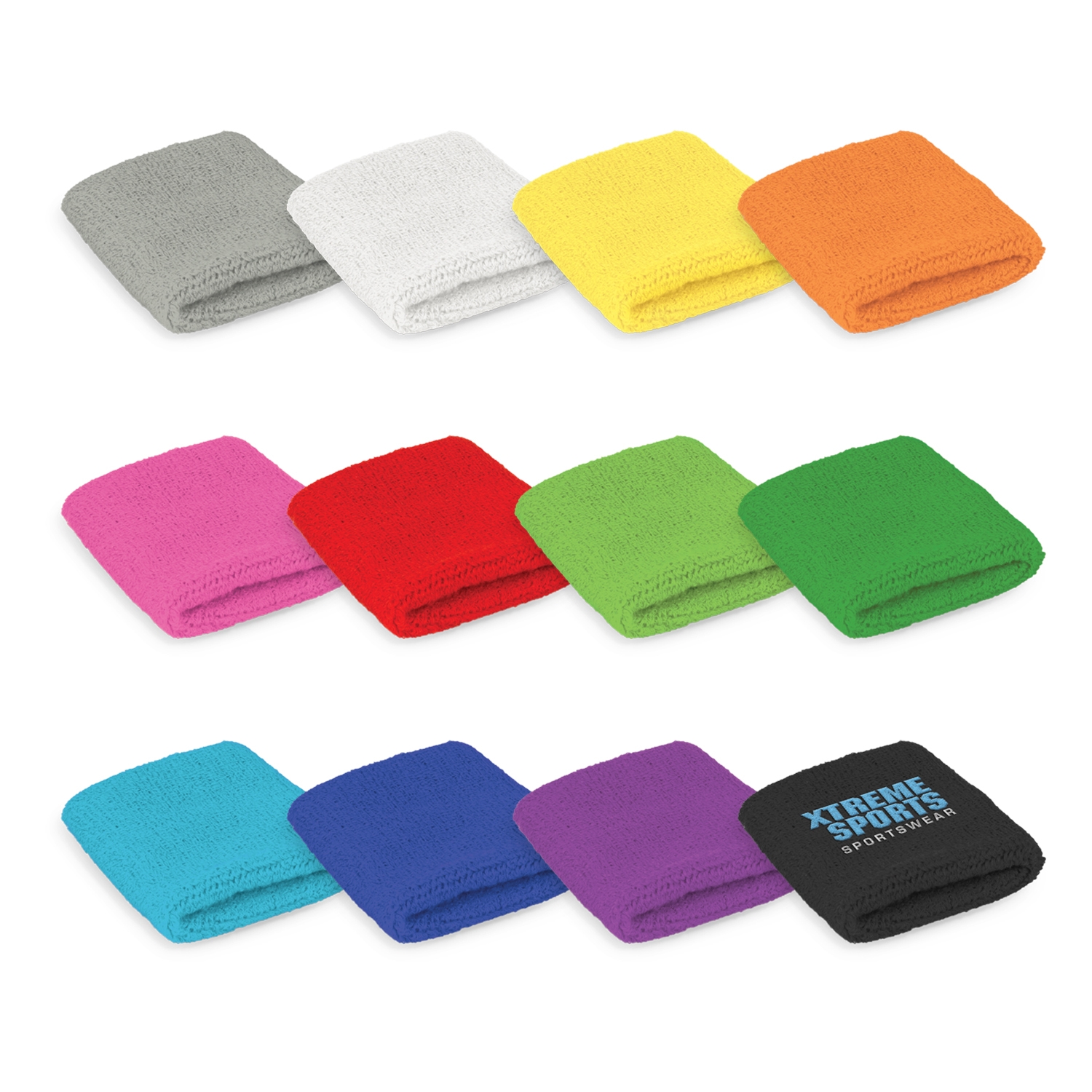 Stretchy towelling wrist sweat band which is manufactured from 80% cotton, 12% elastic and 8% polyester. A production lead time of 20 working days applies to this product by air freight and larger orders can be sea freighted on request to reduce the freight cost.